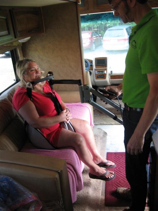 Multi-Lift in Class A Motor Home RV- Accessing Motor Home from Exterior to Sofa-Easy Chair-Passenger Front Seat